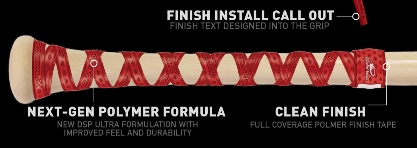 Our DSP Ultra X Bat Grip makes it possible to tape your wood bat like legendary pros while using the most advanced polymer grip in the game. The X pattern showcases a new size and length to allow you to experience our best grip with more feedback from the bat. Featuring our premium adhesive and installation callouts for ease of use, DSP Ultra X Bat Grip takes your game to the next level.